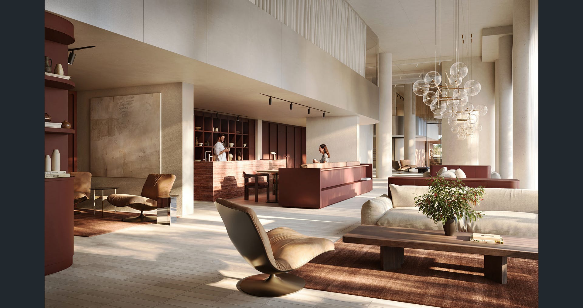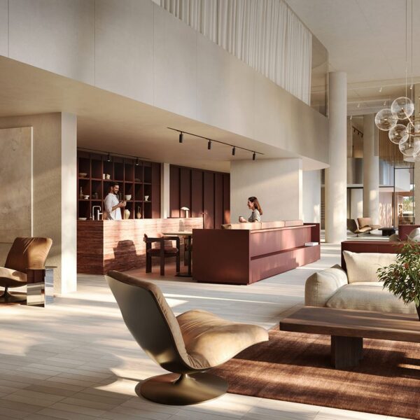 - Hotel-style lobby with double height ceilings, 24/7 concierge and security